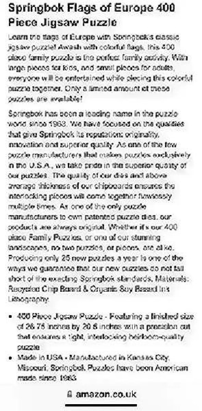 Flags of Europe Puzzle by Springbok - Rare Photos