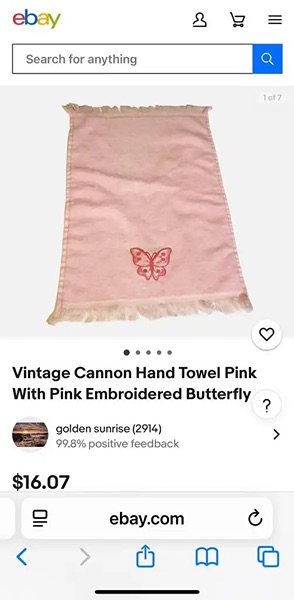 Set of two pink hand towels featuring embroidered butterfly design by Cannon. 100% cotton. Great shape, no stains…$10 firm