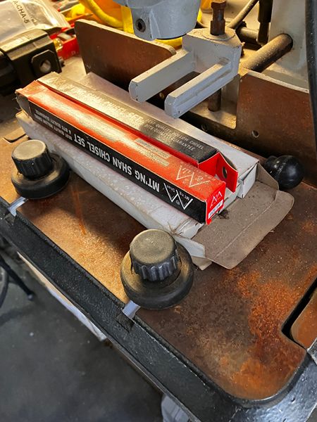 Bench top mortising machine made by Steel City comes with 6 mortising bits. Machine woorks fine