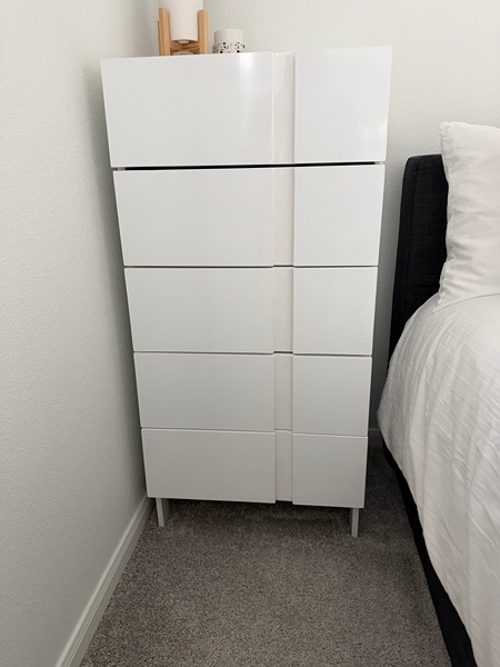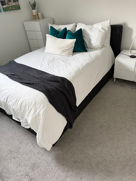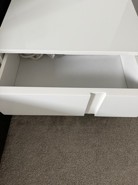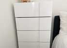 Complete bedroom furniture set including dresser, tall dresser, night stand and full (double) upholstered platform bed with 2 year old mattress. We have had this in our daughters room for the last 5 years. She's now a senior at University and hasn't been home for the summer in 3 years, so furniture is barely used and we bought the new mattress less than 2 years ago. The mattress has always been in a mattress protected cover and barely used. We are a no pet/no smoker home. The furniture is white laminate and modern looking, also in outstanding condition. Only for sale for the next week (end January 23) as we are moving and don't want to take it. Price is for everything, and the mattress was more than $500. Pickup only, in Creekside in the Woodlands. Bedding not included.