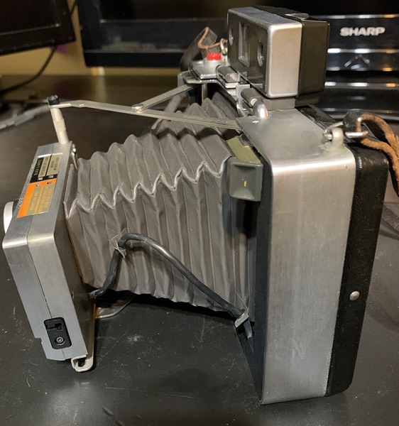 For sale is a vintage Polaroid Automatic 100 Land Camera, circa 1960s. The camera is in overall very good condition. Iconic Poloroid brand featuring a folding bellows, an electric eye for automatic exposure, range finder for focusing, and a hard plastic cover. The camera utilized 100-series pack film that was peeled apart for instant photos. Powered by a 4.5 volt battery (not provided), there is no sign of corrosion. The camera has not been tested and is offered to collectors or for decorative use. Thank you.