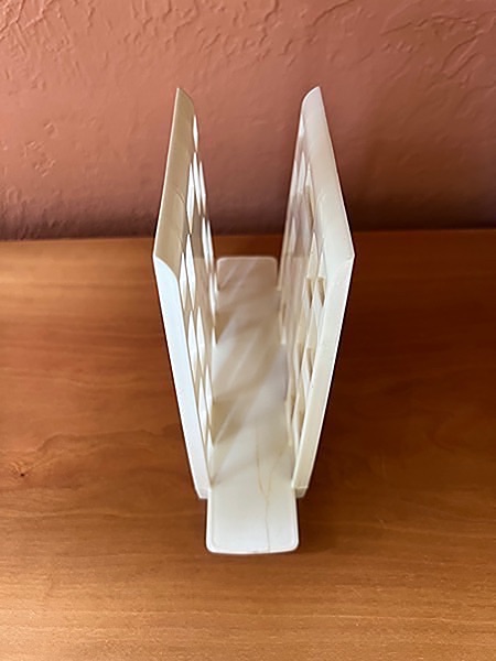 White plastic napkin holder with floral design. Mid-Century table decor…$15 firm