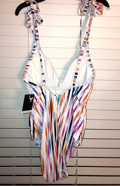 Brand is Sea Angel, size is small. Tie shoulder straps, removable cups, 88% Nylon, 12% Spandex. New with tags from smoke free home. $10