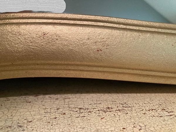 Lovely vintage French country No. 6 gilded gold crown decorative mirror. It's perfect for over an entry console, over mantle or above your dresser or just to bring light into your space. Comes ready to hang with 2 "D" rings. Images reflected in the mirror were photo shopped out. The mirror glass is in perfect condition.