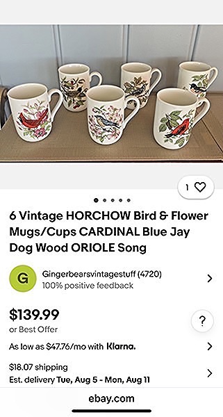 Each holds approx. 8 oz. Excellent used condition. The complete set of six from luxury brand Horchow, was originally priced over $500…$15 each, firm