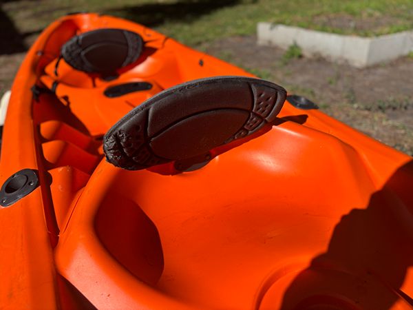 Description: Selling my Pelican Apex 130T tandem kayak in orange. I purchased it second‑hand from an outdoorsman who used it frequently, which explains the cosmetic scratches on the underside of the hull. I’ve personally taken it out only once and realized it’s larger than I need. I originally bought a 2‑person kayak hoping my dog would join me on trips—turns out he’s not a fan of water.