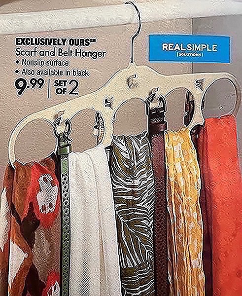 Scarf hanger- to help keep your scarves and belts organized on your closet rod. Holds 5 plus scarves/belts. (Small flaw on right side but only cosmetic)…$12 firm