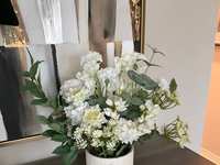 White vase with assorted arrangement. Approx. 20” tall…$25 firm