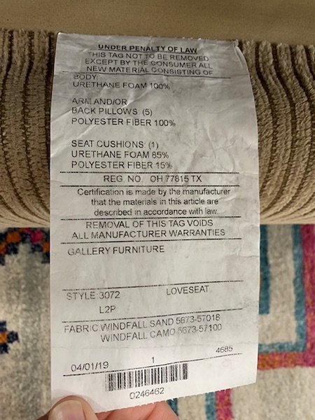 Gallery Furniture brand, neutral (sand color) love seat (2+ extra large seating)