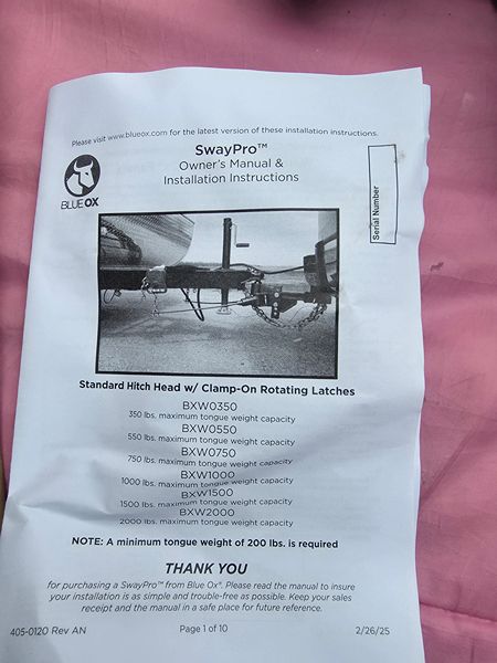 Brand new never used Blue Ox BXW0750 SwayPro Weight Distributing Hitch 2″ Receiver, 7 Hole Shank, 7,500 lbs Maximum Towing, 2 5/16 Ball, Quick & Simple to Use, Levels Out Ride to Restore Control and Stability All hardware included. Retails for $896 + tax on Amazon If interested please text me at 83264zero3422. Price is firm. Pick up only