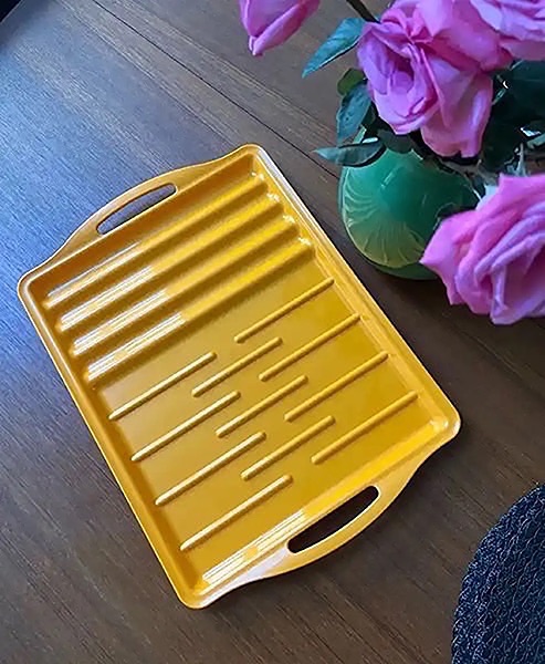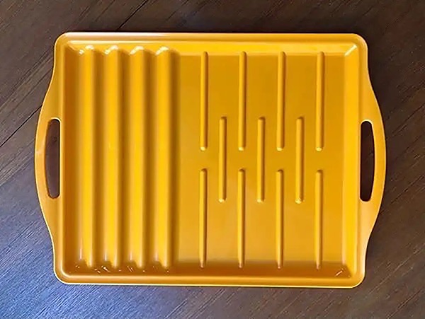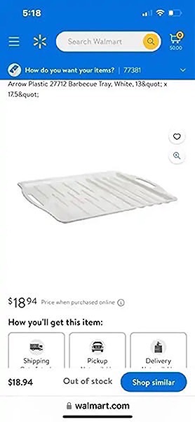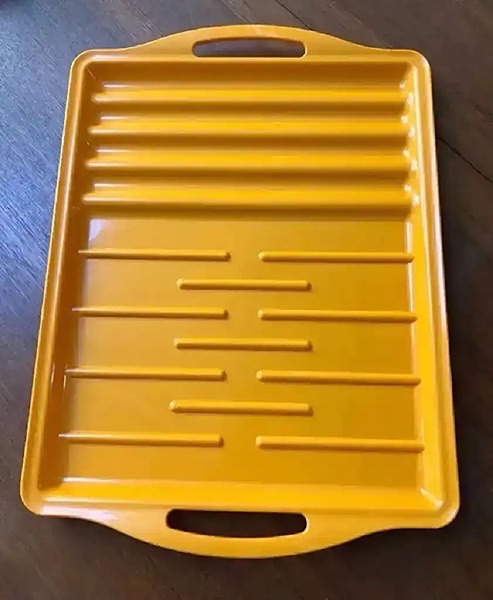 Made in the USA. BPA free. Great for picnics, outings and boating. Barbeque tray with ridges to hold food in place. Also, great for dry brining in fridge! size : 13 x 17.5 Dishwasher safe…$10 firm
