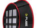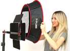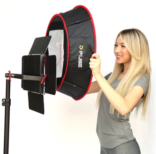 D-Fuse pops open supported by tubular magnetic locks and mounts to your light via four straps instead of a speed ring. When open, the front diffuser has a 23" diameter that widens the beam spread and softens your panel's bright LED output. A bonus is the natural-looking catchlights reflected in your subjects' eyes. When your done shooting just twist the softbox into a fraction of its open size for storage and transport in its included case.
