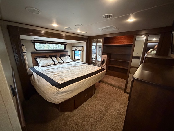 2015 Grand Design Solitude 369RL. $27,000 OBO. All appliances and electronics work. I’ve been the only owner since it was bought new, and lived in it full time for 2 years before it simply became a weekend camper. It includes self leveling hydraulic jacks, push button awning, 3 slides, 2 air conditioners, furnace, heat pump, hot water heater and fridge that can run on either propane or electric, gas oven/stove, microwave, entertainment center with TV, sound bar, surround sound speakers throughout the RV, electric fireplace, 3 seat sofa with pull out bed, 2 recliner chairs, good sized bathroom and shower, king sized bed, washing machine and dryer, along with an enormous outdoor storage area that is also heated. The roof has never leaked, and I re-sealed all caulking to ensure water tight seals. The laminated front cap has pealed but I have had it inspected and confirmed it is only visual