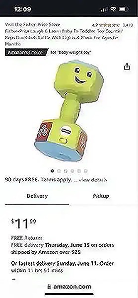 Work those baby biceps and hear all about numbers, opposites, and keeping the body healthy through exercise with the Laugh & Learn Countin’ Reps Dumbbell from Fisher-Price! This motion-activated pretend weight lights up when little gym-enthusiasts lift it. Give it a shake to hear the colorful beads rattle around inside, too. 5 1/2” x 3 (Orig. $12+)…$6 firm