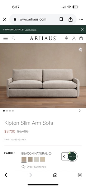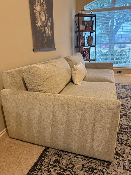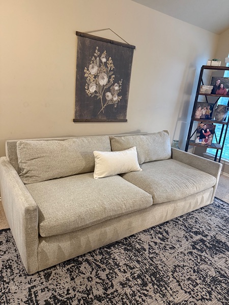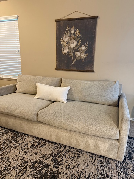 Arhaus Sofa from the Kipton Collection. It is in great condition. Plush cushions (feather blended) and dense foam that makes it super comfortable. Top cushions are not down feather. There’s no rips or stains. Deep seating. Super comfortable!