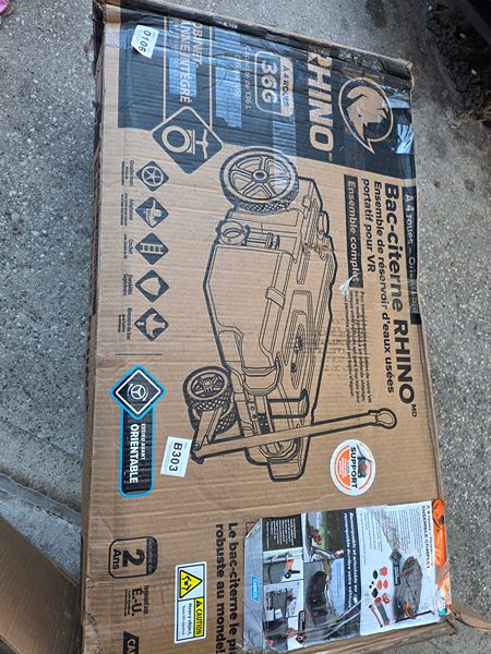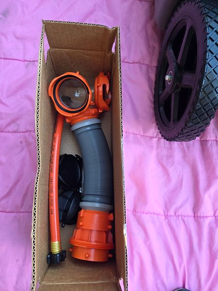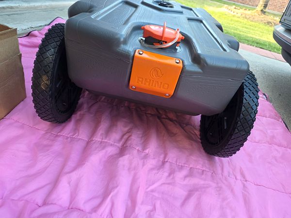 Brand new never used Camco Rhino 36-Gallon Deluxe Portable RV Tote Waist Tank - Features 2 Steerable No-Flat Front Wheels & Built-in Gate Valve - Includes Removable 24' Tow Bar, 3’ Sewer Hose & More RV Accessories. See pictures for dims. If interested please text me at 832-64zero-3422. Price is firm. Pick up only.