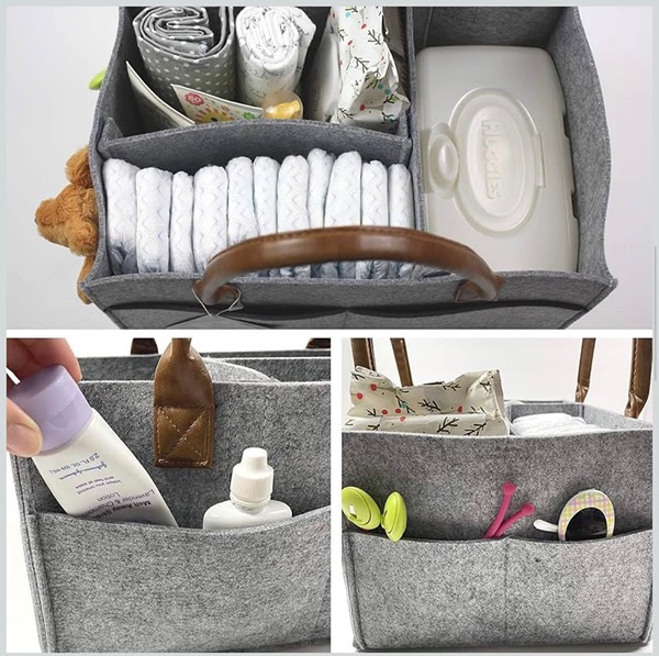 Lily Miles Baby Diaper Caddy Organizer - neutral grey color with water-resistant brown PU leather handle is perfect for boys or girls. This color is currently unavailable on Amazon, but other colors sell new for $23. New, out of packaging. Asking $10.