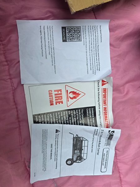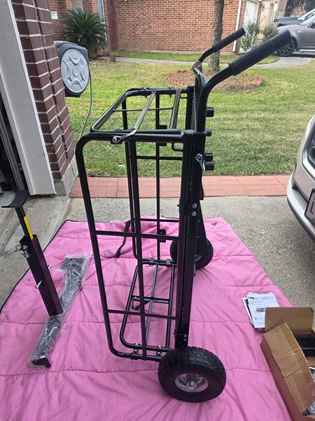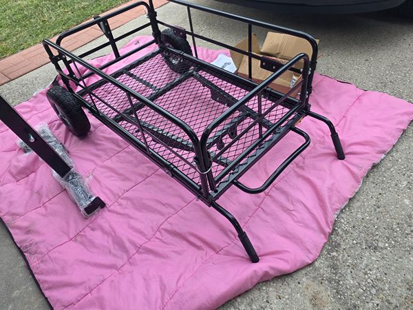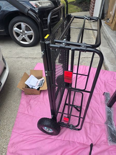 Brand new never used MaxxHaul Model 50243 Foldable Hitch N Roll Cargo Carrier Cart With Quick Detachable Basket Rack With 10 inch Flat Free Tires for Home Camp Travel Ranch SUV Up to 400 lb. Capacity. See pictures for dims. Price is firm.