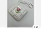 • It features a white, square-shaped ceramic frame with an embossed floral design.