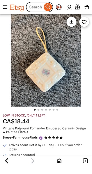 • Pomanders were historically used to hold perfume or scents to ward off infection or unpleasant odors. Approx. 7" with ribbon, 2" ceramic square...