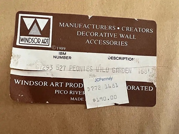 Elegant framed floral art print with original JC.Penny’s price tag of $190. A couple scuffs on frame or maybe supposed to be their for aged look. Approx. 33 1/2” x 27 1/2”. Ready to hang!…$25 firm