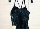 Brand is Kona Sol, size small (4-6). Black zebra stripe pattern, straight neck, spaghetti straps, cinch back with cut-out accent. New with tags from smoke free home. $10