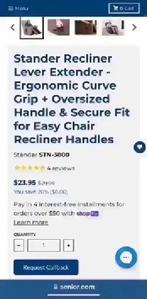 The Stander Lever Extender was designed to make it easier to raise and lower your recliner leg rest. This simple handle is longer which makes it easier to reach the lever plus it gives you more leverage while reclining.