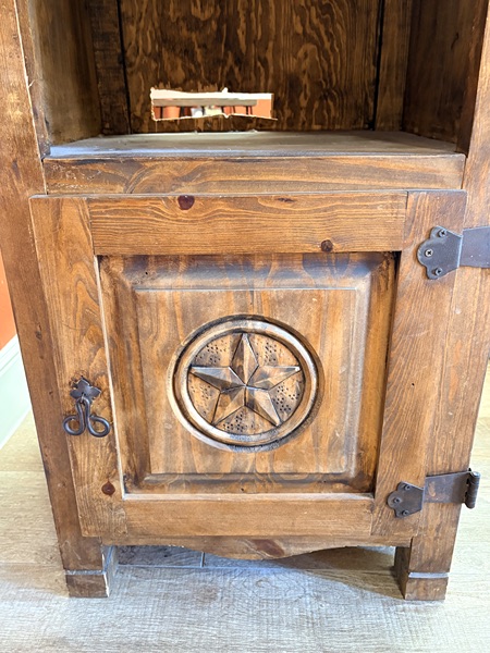 Four Rustic Texas Star Barstools and Matching Bookcase Photos
