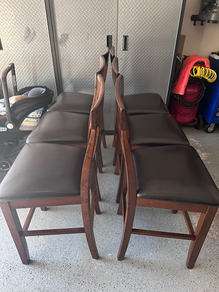 Nice and sturdy table and 6 counter height chairs in good condition. From a smoke and pet free home.