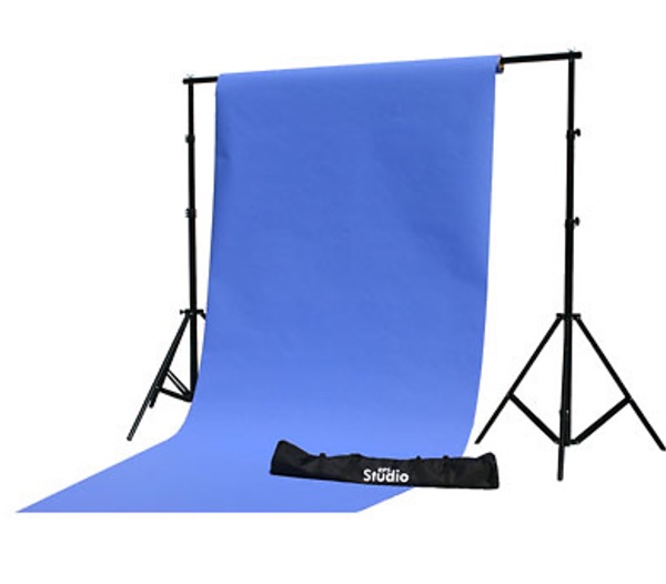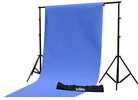 The RPS Studio 10x10 ft. Portable Background stand set This portable background support features metal collars with an aluminum crossbar and uprights with a black finish to cut down on reflections. The air cushioned uprights have three sections with the diameter of 33mm for the largest section. The uprights extend from 44 inches to 120 inches (10 feet). The crossbar has 4 sections. It extends to 130" when all 4 sections are connected. As little as two sections can be connected allowing the use of backgrounds that are narrower than 10 feet. This is especially useful in confined spaces. The sections are very easy to connect...just slide in and twist. Included is a heavy black nylon carry/storage bag that features "zippered" closures and a nylon carry grip. These features are usually only found in background supports that are at a much higher price point. No tools are required. Blue background material pictured is sold separately.
