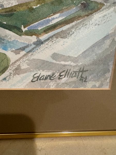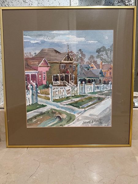 Two framed prints of houses by Elaine Elliott ** Signed & dated