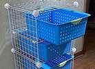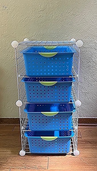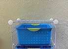 Organizer rack with four Sterlite blue plastic bins (large ultra size 16” x 13” each). We used for Lego’s but you can use it for anything!…$40 firm