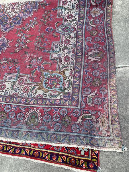 This is a true Persian, Iraq, Oriental rug made of wool. Supposedly was in an United Stated Ambassador’s residence before I bought this about 18 years ago (I used it for about 8 years) and it has been in climate-controlled storage until a week ago. It was professionally cleaned when I bought it and before storage. I pulled it outside to take these pics and its back inside our home. The tag on the back, which is gone, stated the dimensions and origin (Persia, Iraq and approximate date of it being made).