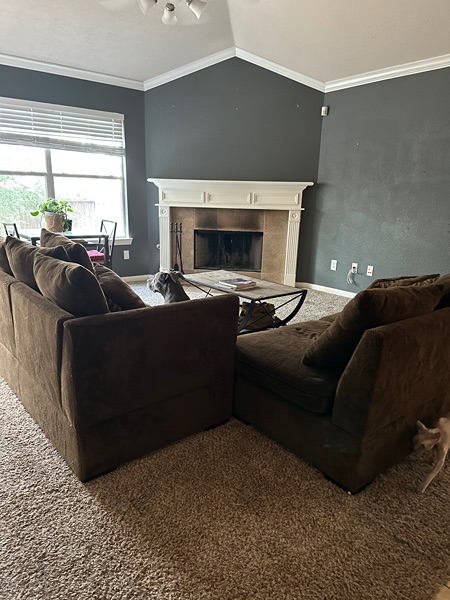 I turn the loveseat side to face the kitchen.