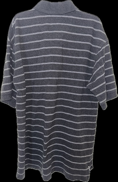 Men's size medium, horizontal striped, polo style short sleeve shirts. Very good condition with minor wear/fade but no known holes, tears or stains. Green is a Kohl's brand, gray is St. John's Bay brand. Smoke free home. $5/both