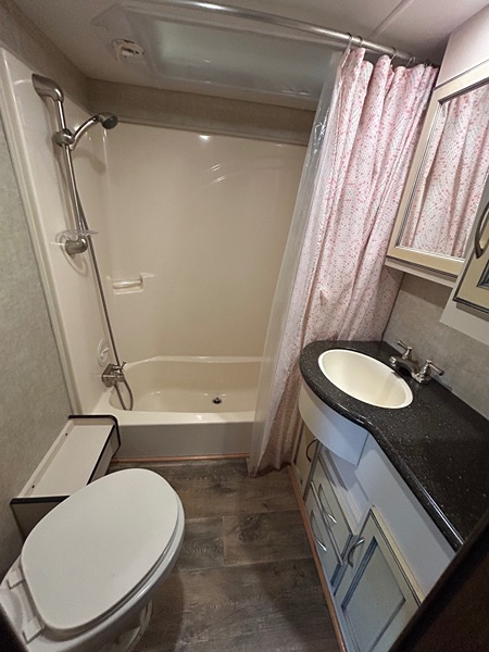 CYclone 2015, 4200 series is a fifth wheel toy hauler that is 42 foot long. It has a two slide floor plan, large bed room, large kitchen, living room, toy hauler room that converts to bedroom with 2 double beds. Full bathroom and a bath and commode in toy hauler with sink. Also 3 retractable awnings. Comes with washer and dryer and refrigerator. IT also has a patio deck and a rear door ramp that turns into an elevated patio deck. The RV is fully self contained with holding tank for fresh and waste water, a 12 volt power power supply system and two-way power appliances. It also has three a/c units and an Cummings onan5500 generator, 3 batteries.This is a great deal.