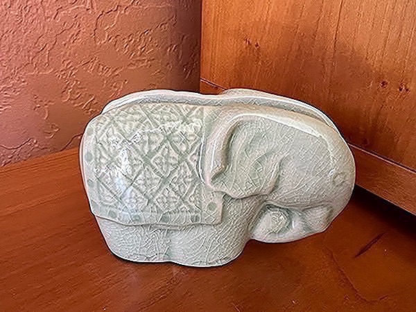 Celadon Crackle Elephant Business Card Holder - New Photos