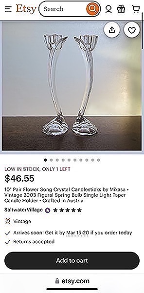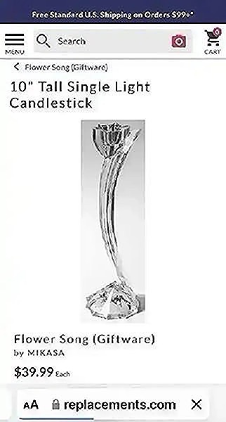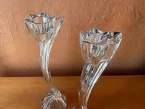 Crystal candlesticks by Mikasa “Flower Song” measures 10” tall, no chips or cracks…$40 firm