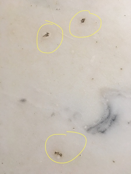 3 tiny dings in the marble. See pictures.