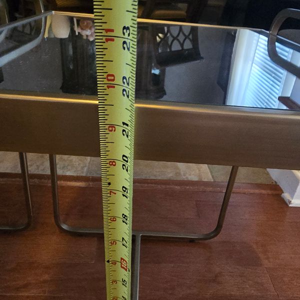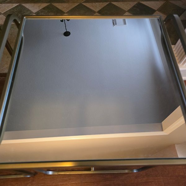 Two Roark Antique Brass End Tables. Measures 16 inches long 16 inches wide and 21 1/2 inches tall. Located in The Woodlands 77381. Crossroad kuykendahl road and research forest drive. Delivery is available for a fee.