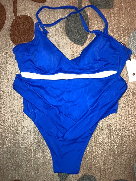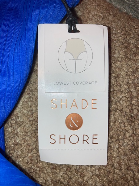 Size small blue one piece from Shade & Shore. Blue ribbed front cutout, sash tie, adjustable straps. New with tags and hygienic liner. Smoke free home. $10