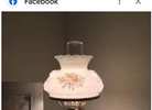 • Design: Features a "puffy rose" embossed pattern on both the glass shade and the lighted base, decorated with painted flowers. ®