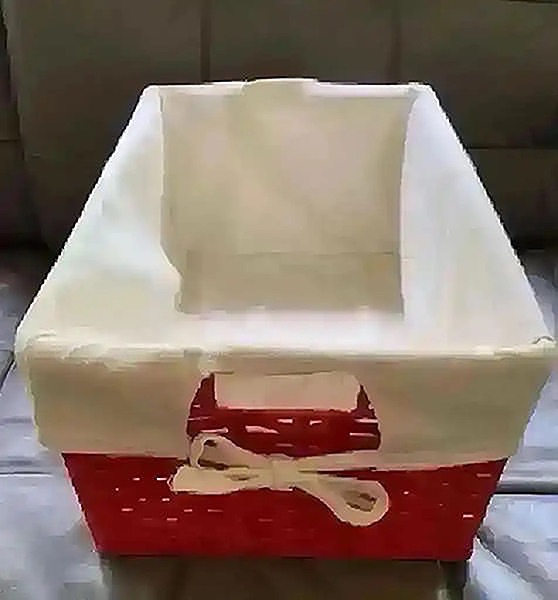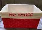 -“My Stuff” organizer tote basket with washable liner.