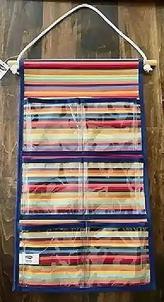 -Six pocket, hanging organizer from Old Navy 2003, used for a short time, measuring 27” (from hanger) x 11 1/4”