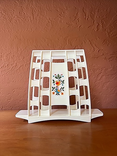 White plastic napkin holder with floral design. Mid-Century table decor…$15 firm