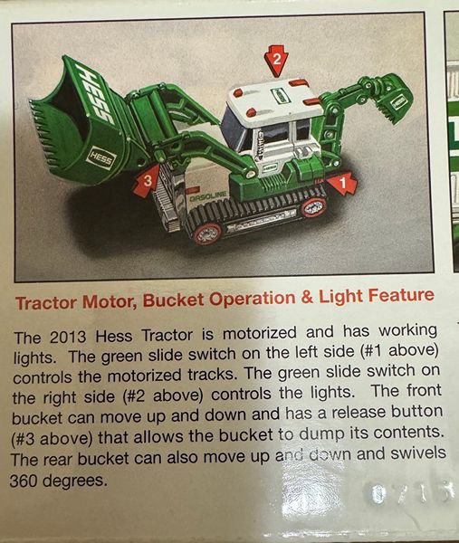 Real head & tail lights with flashers * Multiple sound features * Motorized tracked loader with ights * Mechanical bucket and digger arm * * Ages 3+ *** More information in pictures