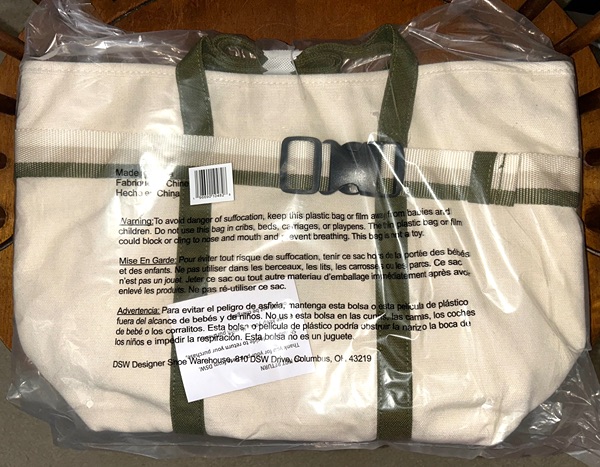 DSW exclusive canvas tote bag with travel band, zipper closure, and flat handles. New in package. Originally $60, asking $20.