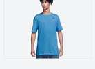 Men's small activewear Dri-fit tee in light blue with a dark Nike logo swoosh on left chest (may be black or dark blue-I can't distinguish between those colors). No major flaws, just light wear/pilling. Overall good condition from smoke free home. $5