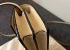 Pebbled leather; suede trim.