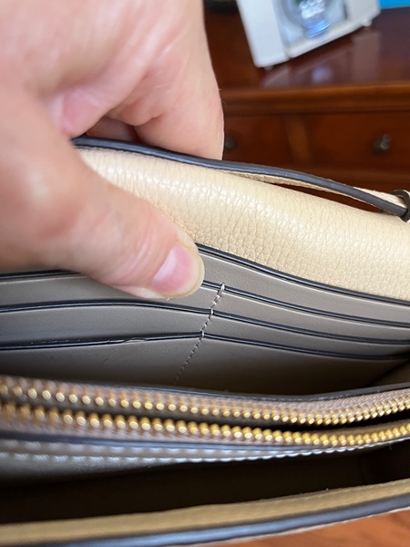 1 exterior back slit pocket, 1 interior bill pocket, 6 interior card pockets, 1 interior zipper pocket, 1 interior front compartment.